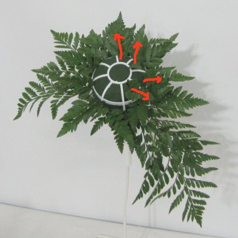 Use shorter fronds to fill in the top and sides of the bouquet holder.
