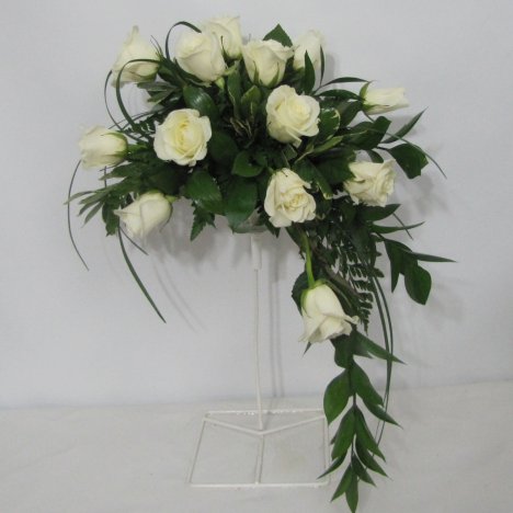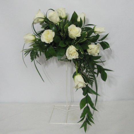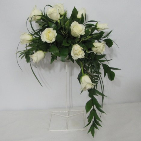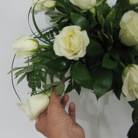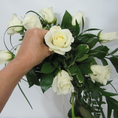 Once I get to the middle of the bouquet, the rose is going to be very open, shorter and sticks directly out towards the front. This is the focal center of the bouquet.