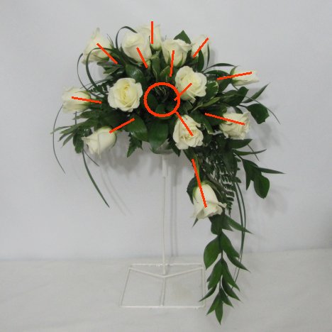 You can see what I mean by finding the center of your bouquet and working in an outward pattern from it to all parts of your bouquet design.