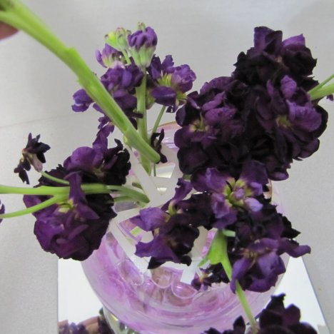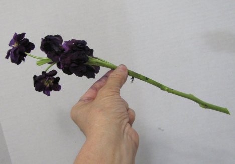 Now I'm inserting another stem of purple stock and lean it the opposite way. The grid is helpful because it keeps these stems where they need to be at this point.