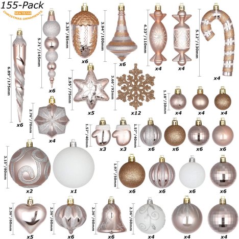 This lovely assortment will give you different styles of ornaments to give you design definition and texture differences. Monochromatic (all one color) looks need textural difference to prevent the tree from being too bland. Difference sized ornaments do the same.