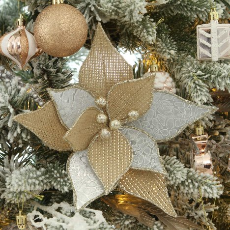 These gorgeous clip poinsettias add a beautiful accent to this tree design! The dainty plaid gives a whole new look to this Christmas flower!