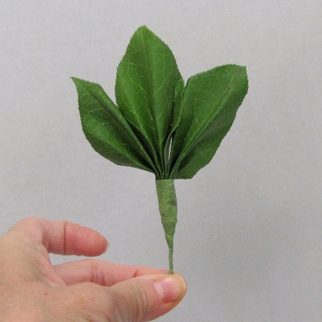 Pierce the bottom of the leaves with a 26 gauge floral wire.