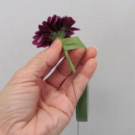 Tape into place with stretch floral tape, keeping the stem nice, tight and smooth.