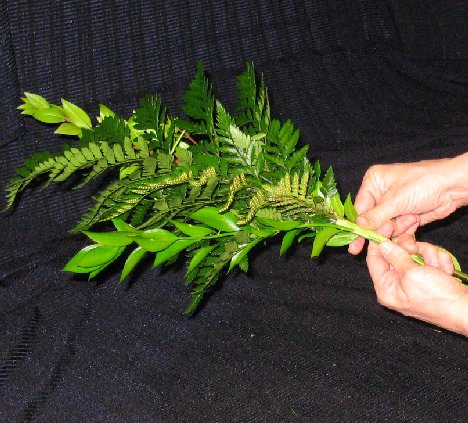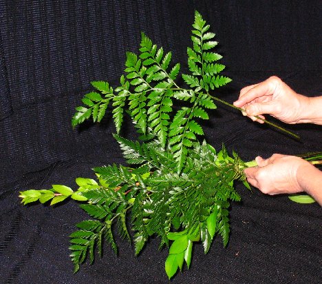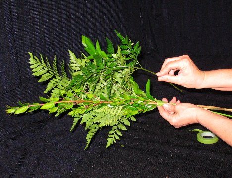 Don't forget the back side. Conceal the "wrong side" look of the ferns with enough ferns facing outward that the final bouquet will look good from both front and back.