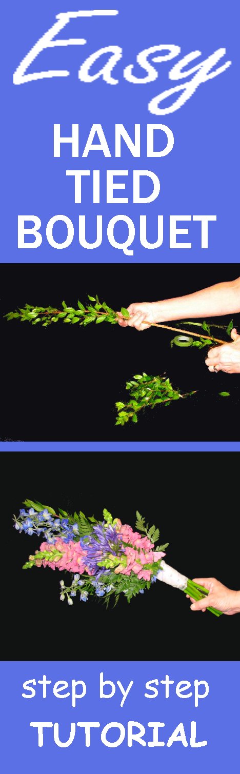 This hand tied bouquet is very easy and simple to recreate. Don't be limited by the flowers - you can pick your own varieties and colors. Do be mindful that this bouquet does not have a water source. Some flowers, particularly garden roses, Gerbera daisy, peonies and hydrangeas tend to wilt quickly - especially if the wedding is during the warm summer months.