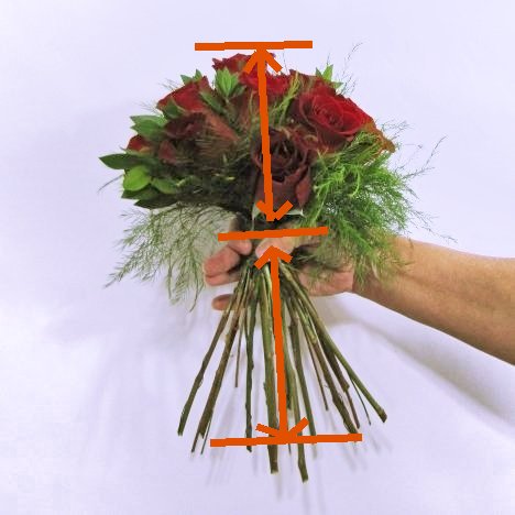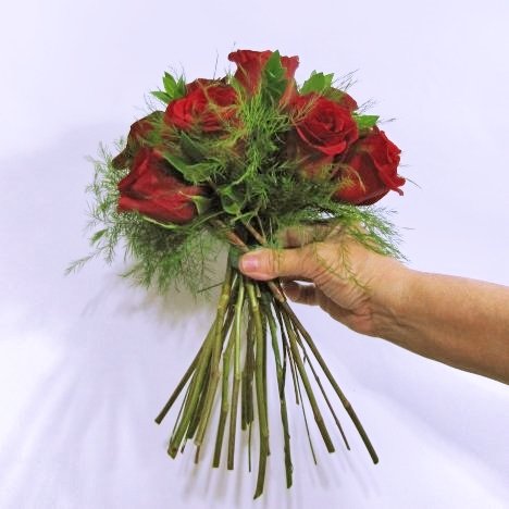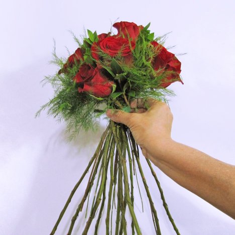 Once all your roses are in place in your hand tied bouquet, you will need to cut the stems off shorter.