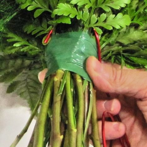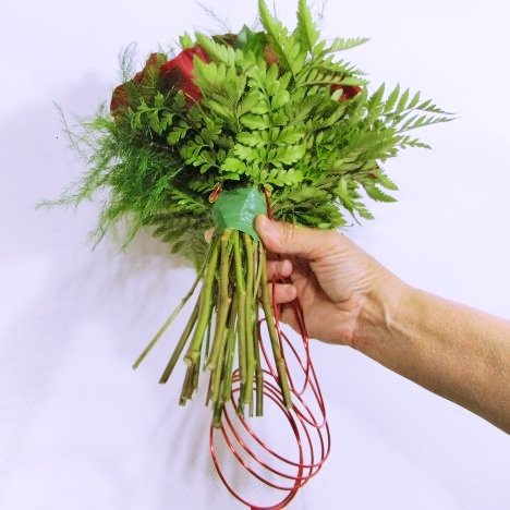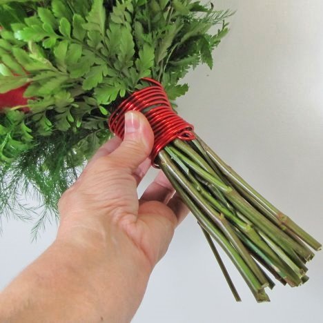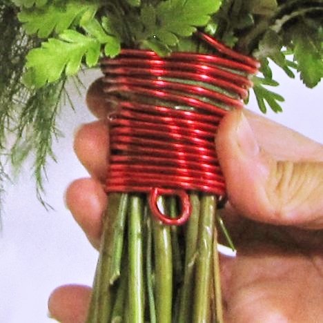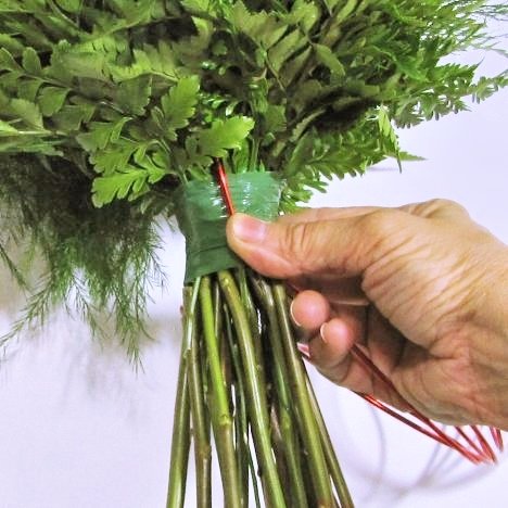 You will then begin carefully winding the wire around the bouquet handle, making sure to cover that cut end of the wire.