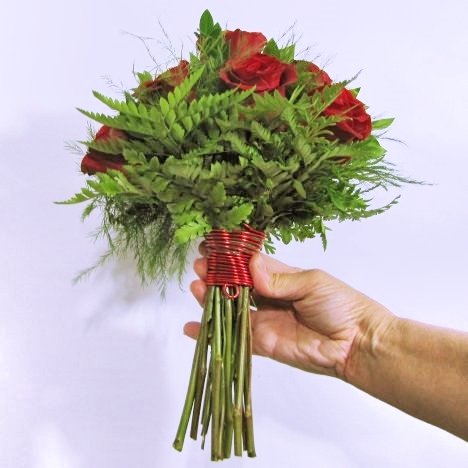 I actually "hook" in on the other side. This secures the wire firmly into the bouquet.