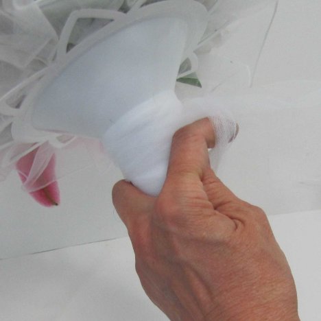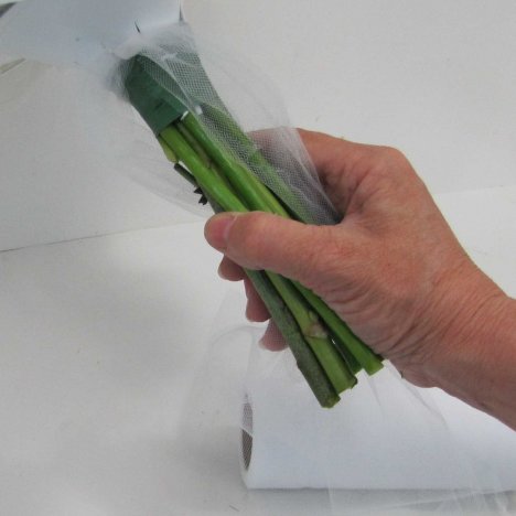 Begin winding the end still attached to the tulle bolt around the stems directly under the tulle collar in order to conceal the BindIt tape.