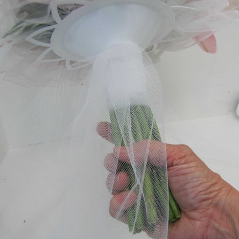 You can add more lengths of tulle, increasing the number of ribbons trailing off the bottom of the bouquet. Finish with a bow if desired.