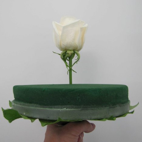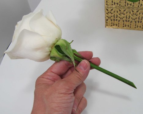Cut your roses that are to be in the middle of the design with at least 3 inches of stem still attached.