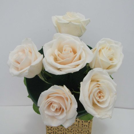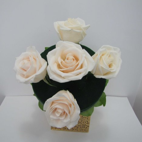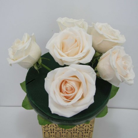Maintain a circular shape for a traditional round bouquet. The center rose is the highest point, and the surrounding roses begin to be lower than the center rose.
