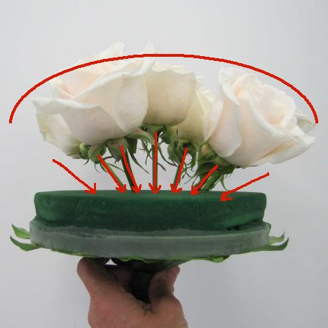 Draw an imaginary line across the top face of the roses and then see how the stems are beginning to angle outwards.