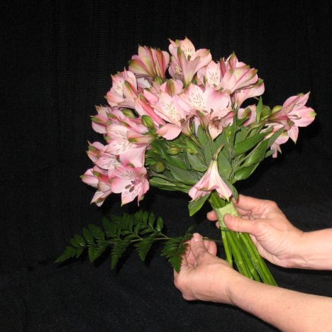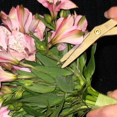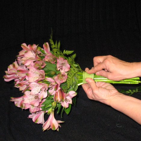 Don't forget to inspect your bouquet and snip off any broken or bruised stems. You can set these aside and place in water for use in corsage or boutonniere work if the bloom still looks good.