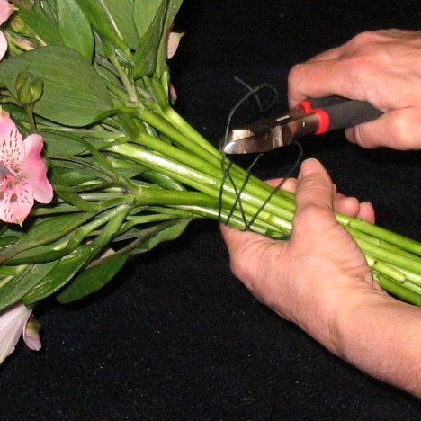 Gently pull the wax string taut, pulling all those flowers stems tightly together.
