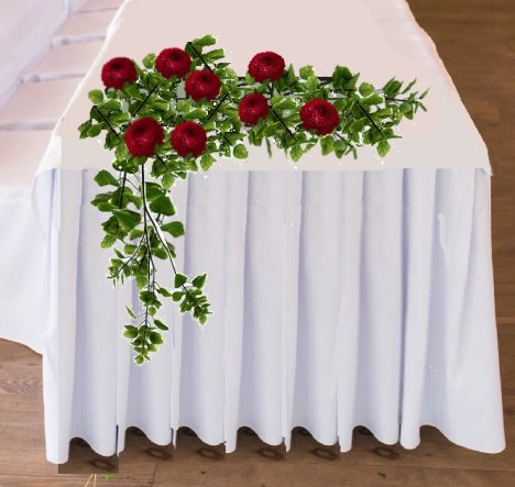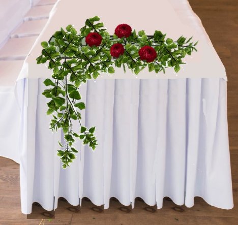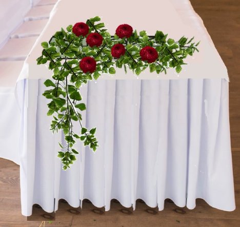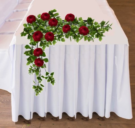 Head table decor can be only on one end, balanced by (perhaps) a tall arrangement on the other end. Brides often like to have mirror images, matching the same design on the opposite end of the head table. These are the choices you have to decide on before ordering your flowers, so you can have a correct count of the number of stems you need for each design.