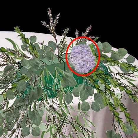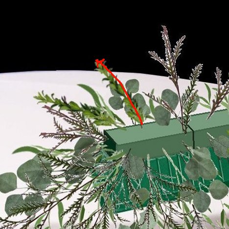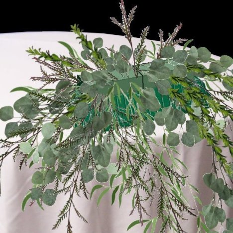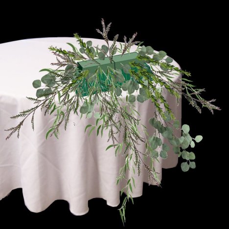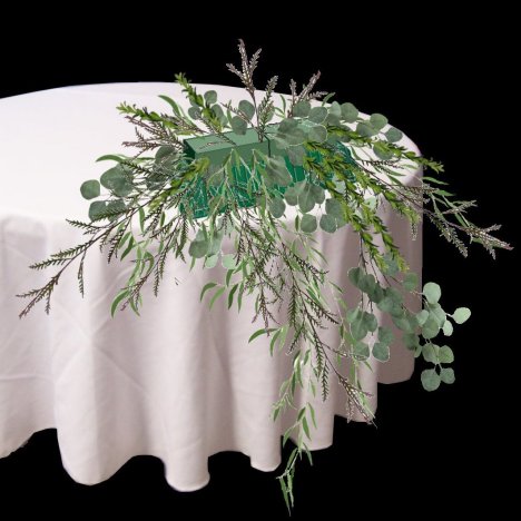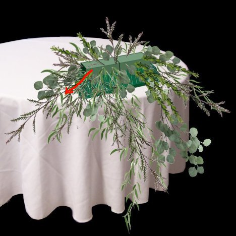 As you fill in the top, watch the height of the greens, as you don't want to conceal the faces of the bride and groom from the guests when they are seated at the head table.