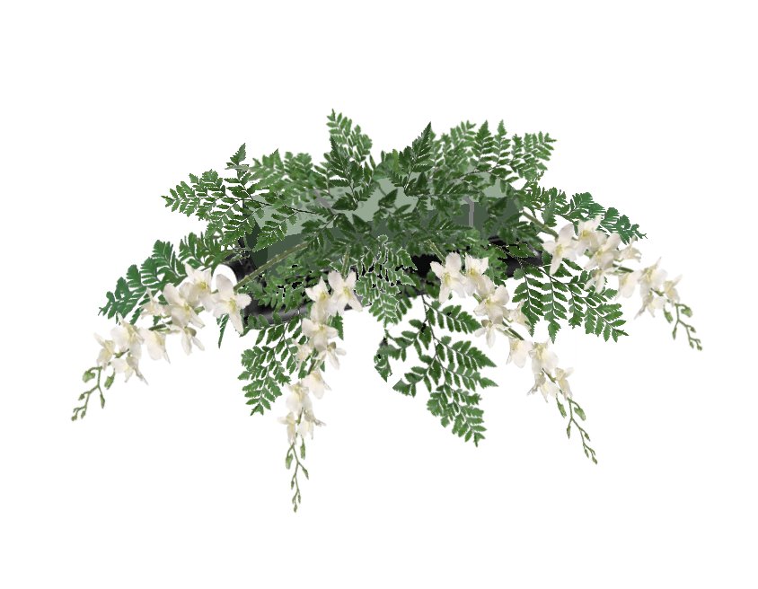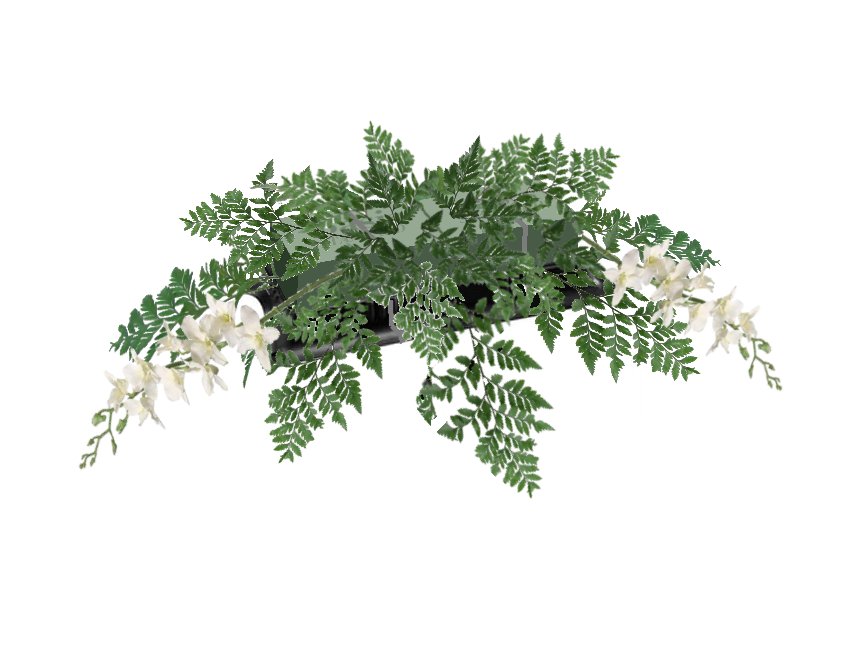 Cut the two dendrobiums in the back a little shorter, with a slight angle towards the back. You want to give dimension to the piece, but you do not want to interfere with the plates and cutlery on the table setting. Use the left over cuts, cutting them shorter, and insert in the back of the arrangment.
