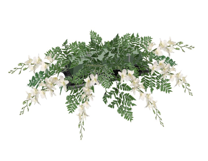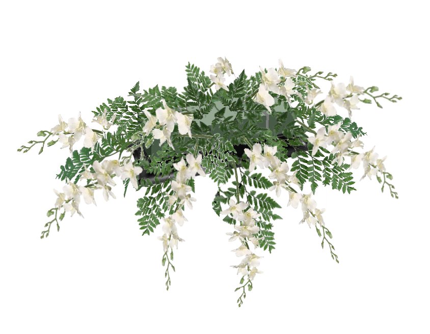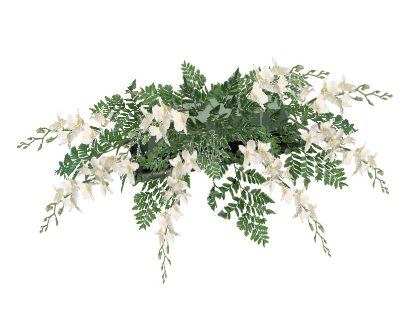 The head table wedding arrangement has now been greened in with leather leaf fern. Put all your flowers within reach. Always cut with a sharp florist knife pulling towards you with an angled cut. Do not use regular scissors, as they can crush delicate flower stems, making it hard for water to travel up the stem.