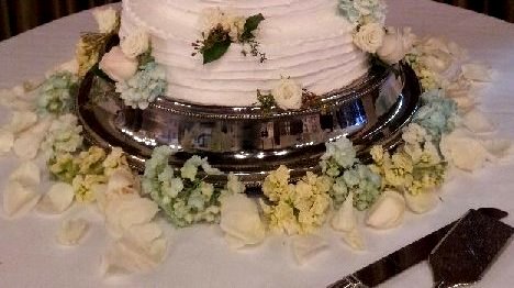 Once all your flowers are placed on the actual cake, you can elect to use any remaining flowers around the cake base or stand.