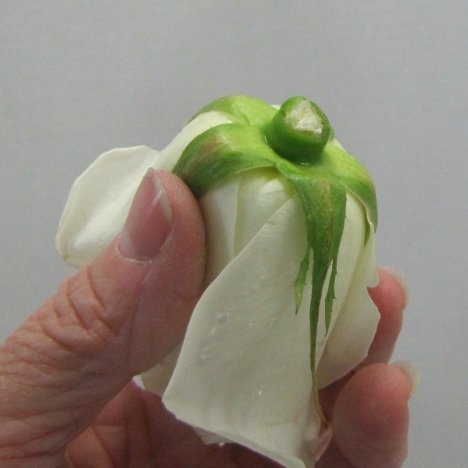 Use a sharp knife to cut a clean cut thru the calyx (bulb under the flower head). Closer cuts for flowers being glued to the center of the corsage.