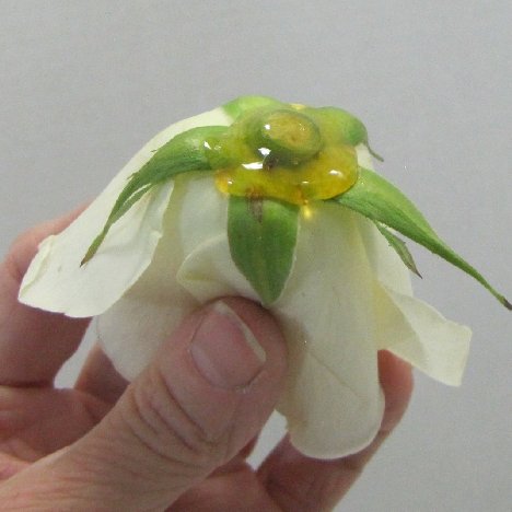 It is wise if you are working with white flowers to have clean hands and then mist with Finishing Touch. This helps prevent the oils from your fingers from transferring to the petals and contributing to early browning.