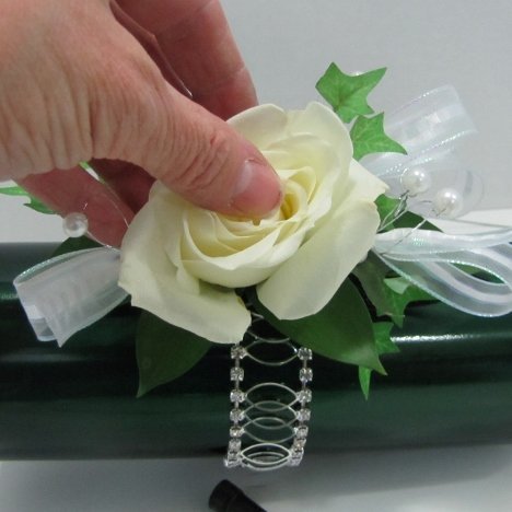 Look your roses over before gluing into your corsage. Remove any imperfect petals. If you would like a more open rose, blow gently into the head to help loosen the petals.