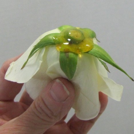 Gently place the flower head into place and hold for a few seconds until it adheres.