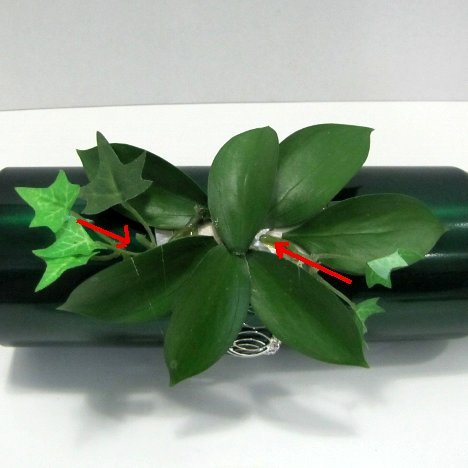 To art of making a corsage means to make it unique with different textures. I'm now going to glue in sprigs of spring green ivy leaf. This gives some contrast to the white roses.