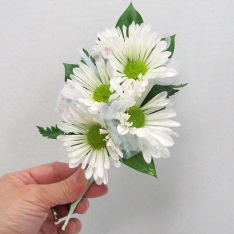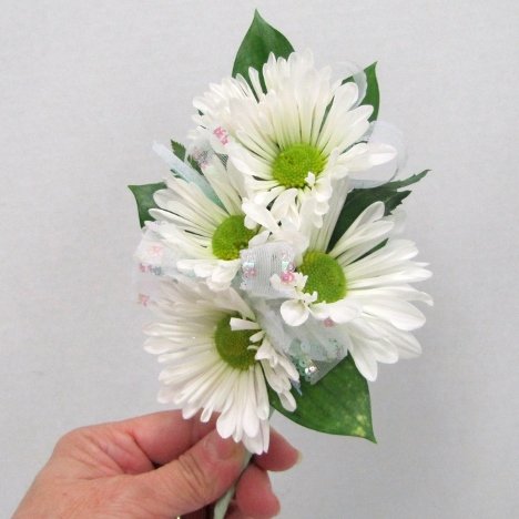 How many flowers you add it up to you. Keep in mind the size of the person wearing the flower accent. Dainty little girls and slender teenagers need smaller flowers while larger women should have a corsage proportioned to their wrists or shoulders.