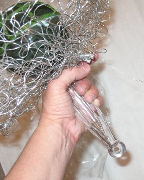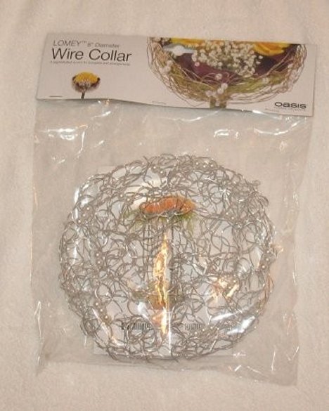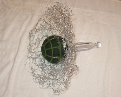 I slid my Gala Crystal bouquet holder down into the center of the large wire collar and wrapped some paddle wire firmly around the handle, thus attaching it to the holder.