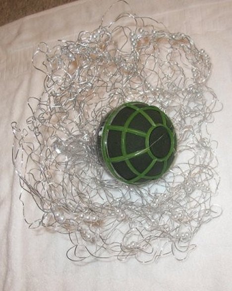I actually used TWO 8" wire collars for this bridal cascade. I opened the package and pulled the holder out of it's round shape into one that looks rather kidney shaped. Do this with both holders.