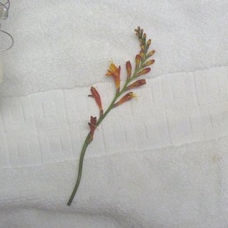 You can see how the crocosmia is beginning to trail over the wire bouquet collar, drawing the eye downward.