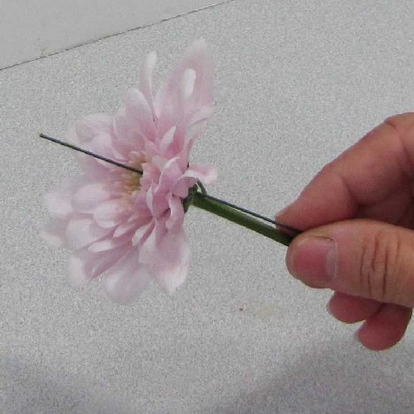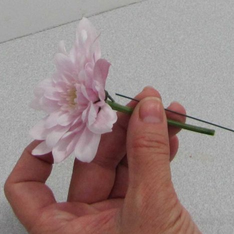 Place the wire stem parallel to the flower stem and pierce right below the flower head.