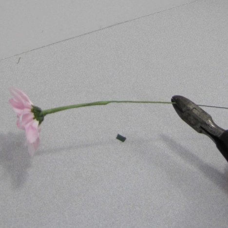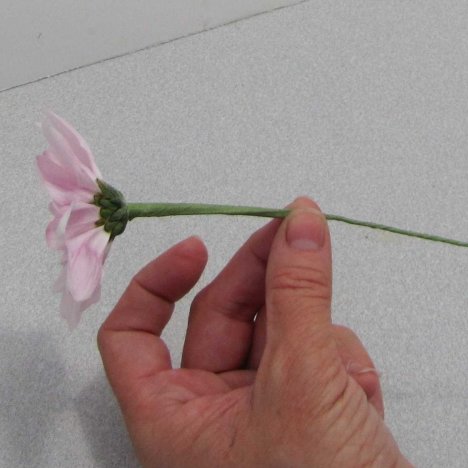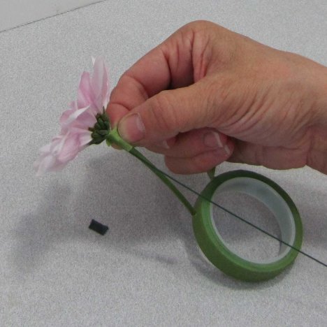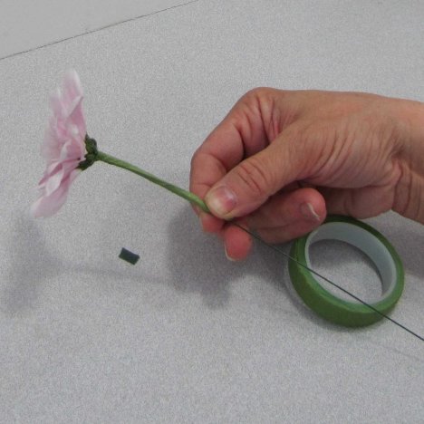 The finished look should be smooth and slender. Now with a wire taped to the flower stem, you have the advantage of being able to gently manipulate the stem, bending the flower head at the angle you want without snapping it off accidentally.