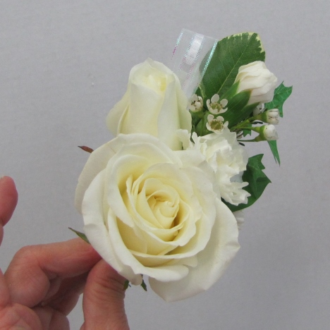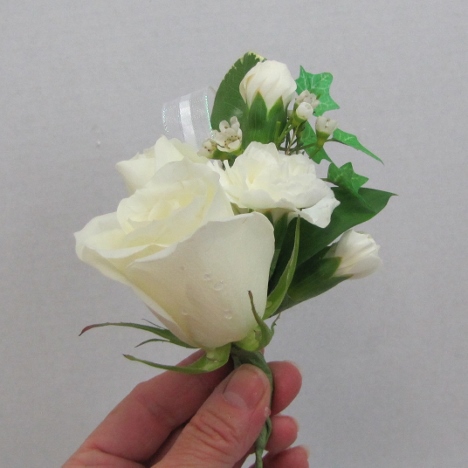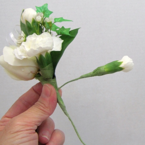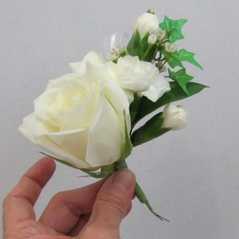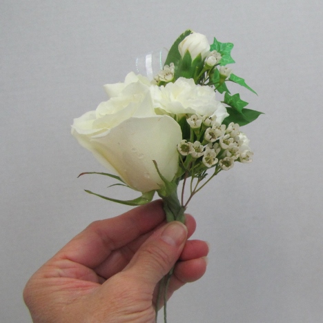 Another lateral view from the side after the rose is taped and secured to the existing corsage.