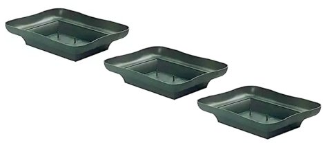 The last on my recommended list is long garden trays. Although these are really designed for planter use, the ones without predrilled holes work very well for holding the wet florist foam. They come in lengths of 18" up to 30" and regular bricks of foam can be fitted to length. You need to use waterproof tape to secure them into the tray. The bottoms are flat, so you need to use waterproof tape to secure the foam to the tray.