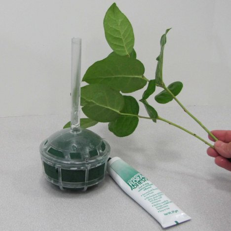 I used Oasis floral adhesive professional floral adhesive. Be careful - it comes out of the tube in a hurry. Have a corsage pin ready to stick in the neck of the glue bottle - that works much easier than the cap and doesn't get "glued on" to the tip later!