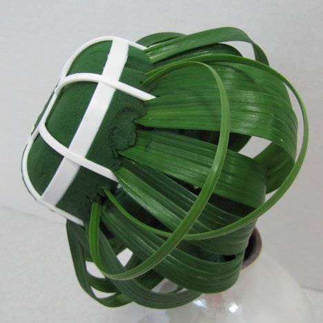 The ends of this grass variety inserts easily into the foam. I drew down the other end to push into the foam as well, creating a large, curved loop.