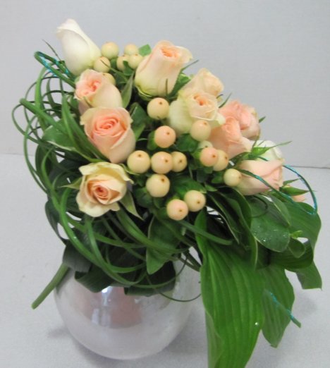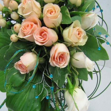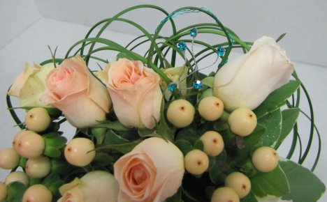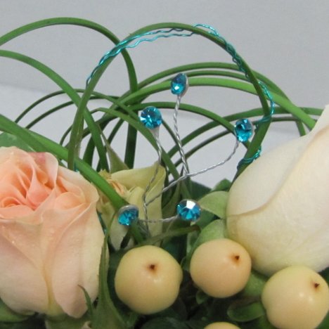 I tucked a spray in the upper section of the bouquet holder, right under one of the loops that have the crinkled bullion wire wrapped around it.
