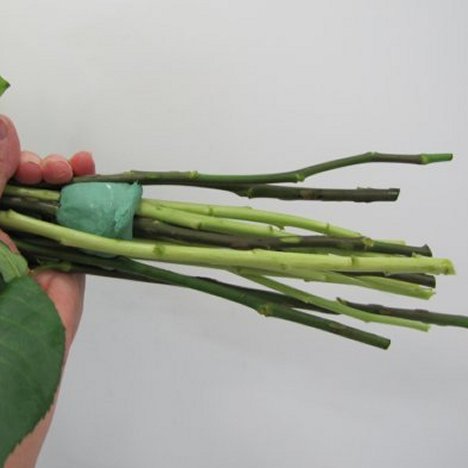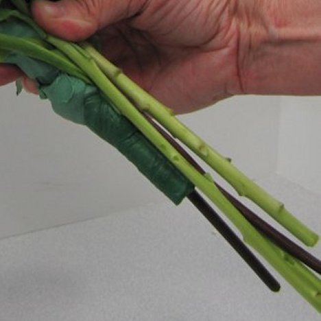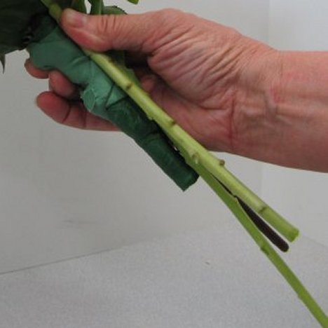 I trim the stems down shorter and even after the stems are taped securely in place.