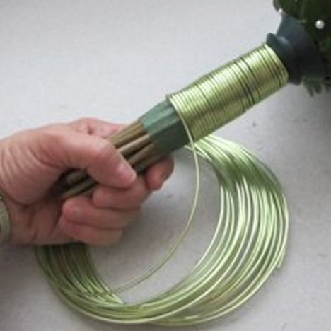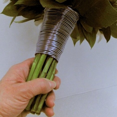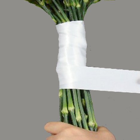 It comes in a wide range of colors and gives a beautiful finish to a bouquet handle. The best part is that it is impervious to water, so it can be done immediately after the design is finished and can be inserted into a vase of water with no harm to the wire.