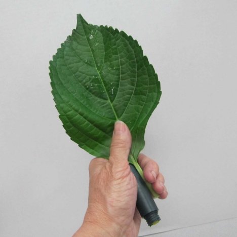 When creating a hydrangea bridal bouquet, a good floral designer always takes advantage of using as much of every fresh product as possible. This includes the leaves. Hydrangea leaves are big, glossy and green and can help conceal the foam head of the bouquet holder.