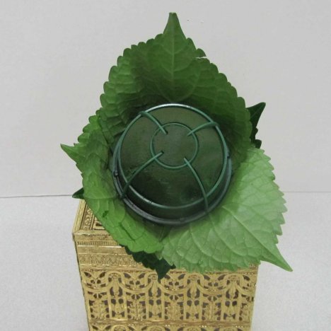 I don't bother with doing it on this tutorial, since I am cutting off the individual florets to insert into the florist foam head of the bouquet holder instead of using the hydrangea as a single stem.