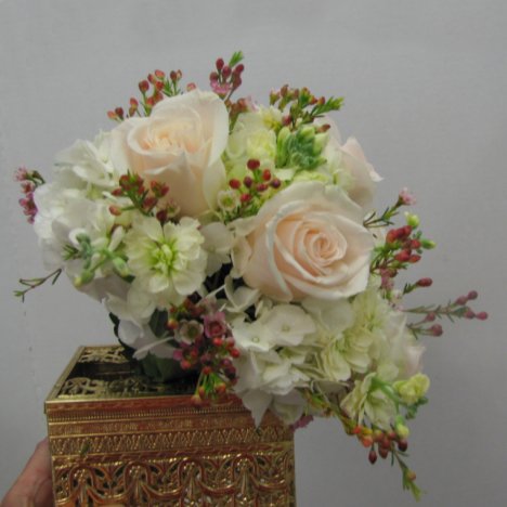 Stock has a delightful scent. It is a hardy flower that resembles hydrangeas to a certain extent. I know that this flower is very dependable and can work well in keeping to the all over design if my hydrangeas should not hold up for any reason.