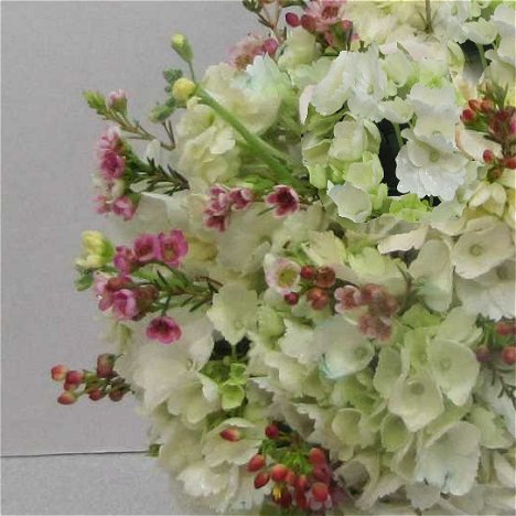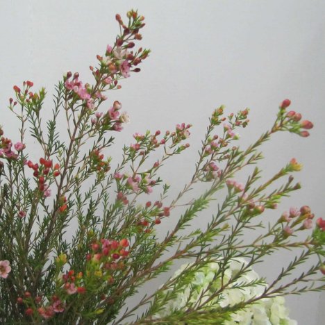 This hydrangea bridal bouquet will be a little more interesting if you add a filler flower. This wax flower has tiny pink petals that compliments the billowy hydrangeas. It also comes in tiny white, purple or pink blooms and buds are at the tips of a grassy stem.