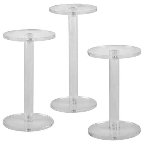 Any type of flat top risers or compote glass plates can work for this type of flower designing. Clear acrylic risers are inexpensive and give a nice lift to your Iglu centerpieces.