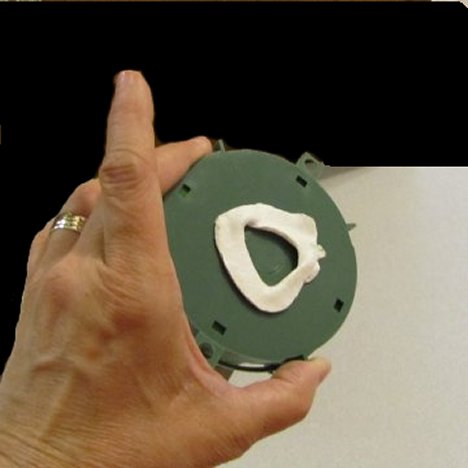 Simply apply a flatted piece of the clay to the bottom of your Oasis Iglu.