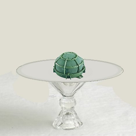 Set plate on candlestick as explained above. Cut foam ball in half and secure to plate with waterproof tape. Arrange flowers and foliage. Spray entire arrangement with Clear Crowning Glory®, making sure to completely coat the fronts and backs of the flowers. Refrigerate until delivery.